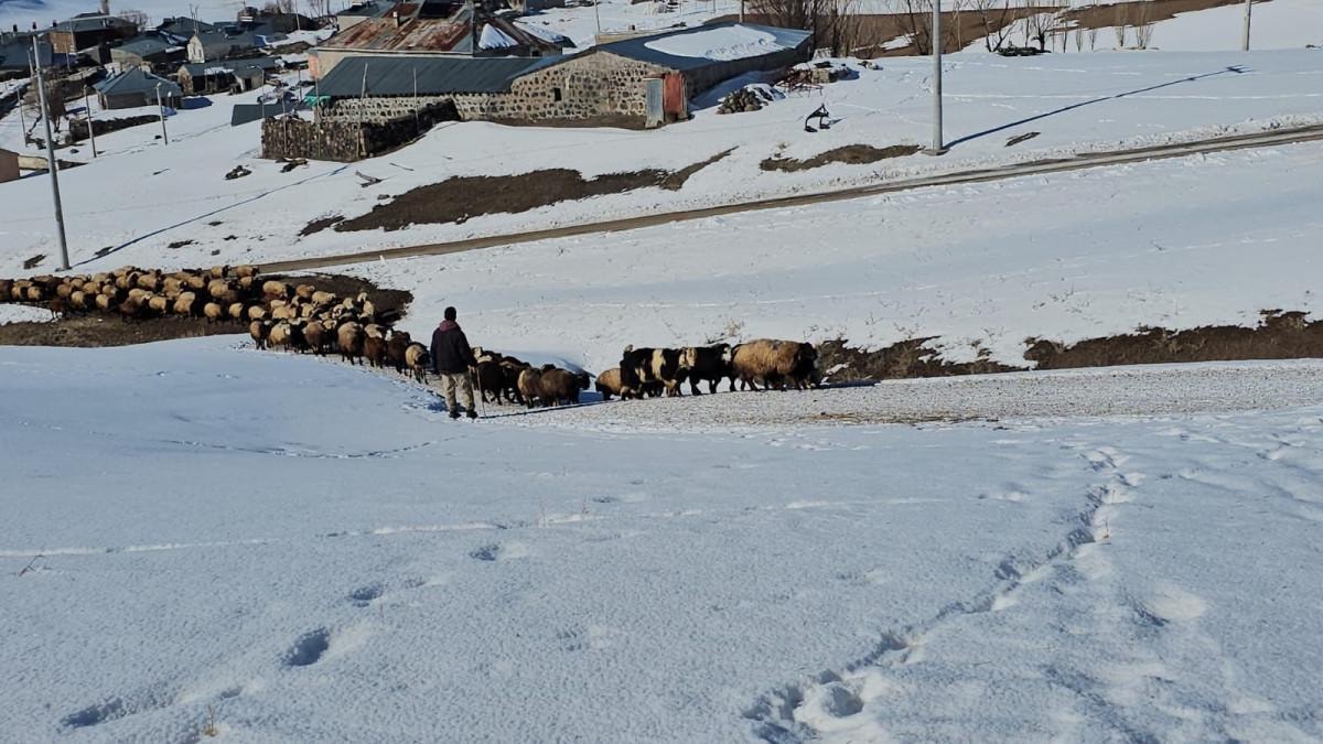 İlçenin Cihangir köyünde hayvancılıkla uğraşan Faik Karayılan, “Burası Süphan Dağı eteklerinde bulunan Sütey Yaylası'ndaki Cihangir köyüdür. Göründüğü gibi kışın bayağı zorlanıyoruz.