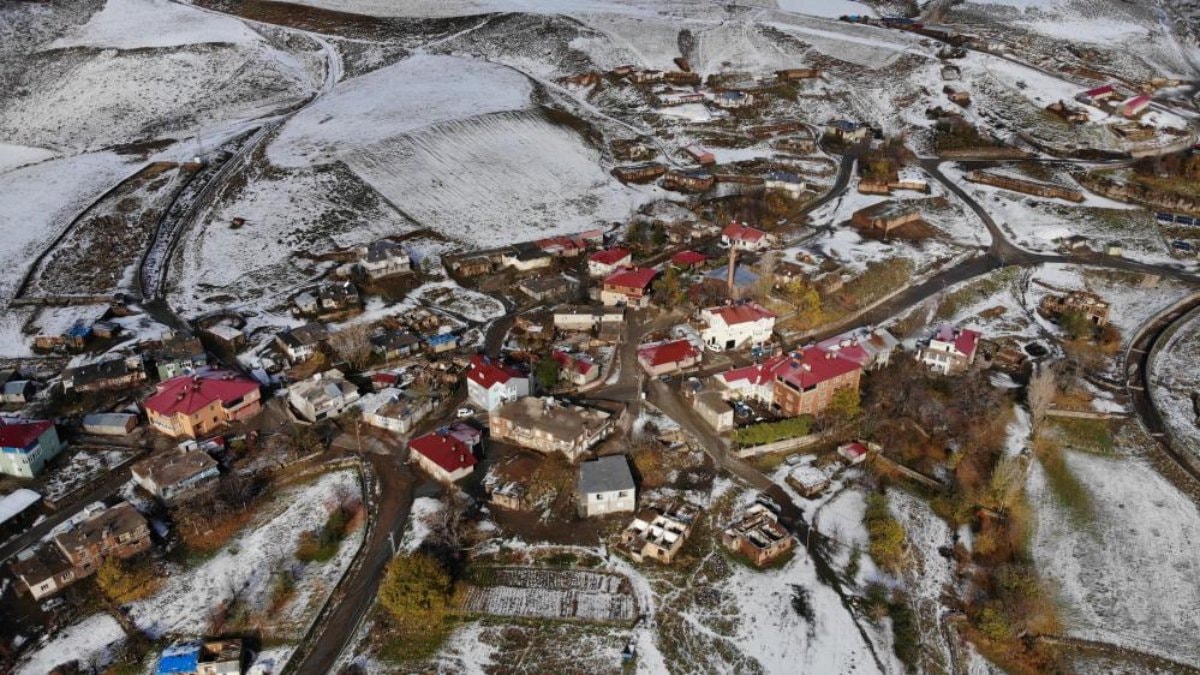 Kar yağışı sonrasında beyaza bürünen Çekmece köyünün havadan görüntülenmesi görsel bir şölen oluşturdu.