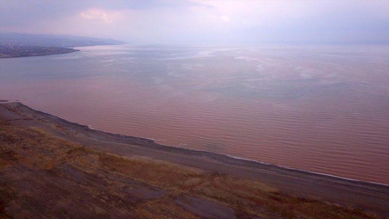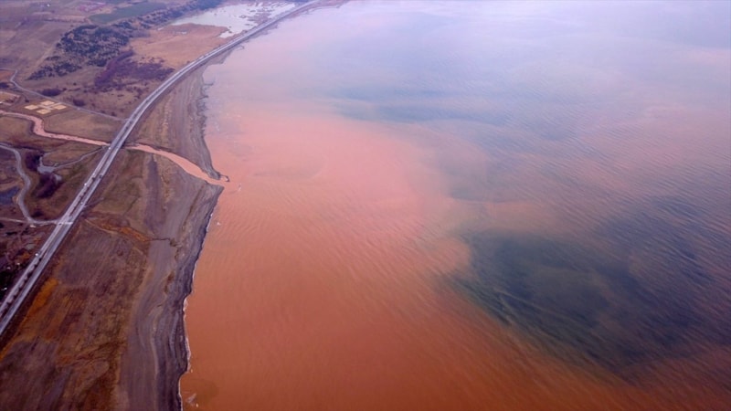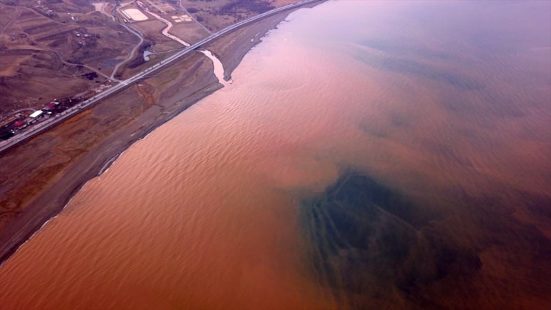 Dereden akan su, Van Gölü kıyılarında renk değişikliğine neden oldu.