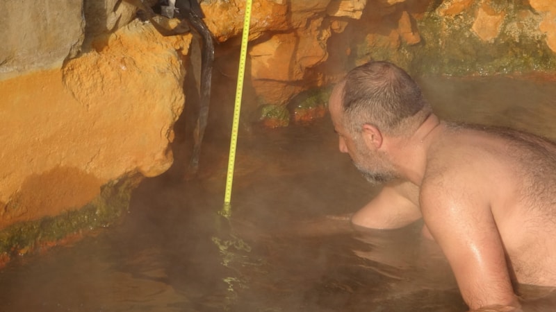Çok uzun yıllardan beri Nemrut Kalderasını ve İron Sazlığını gözlemlemekteyim. Gözlemlediğimiz bu doğal ortamı aynı şekilde içerisindeki vahşi canlıları kaydedip belgeselleştirdiğimiz zamanlar da oldu. Burada enteresan bir durum var. Geçen haftalardan bu yana bu bölgede inceleme halindeyiz. Budaklı Kaplıcasında şu an bir ölçüm alarak termal sıcaklığına baktık. Sıcaklıkta geçen zamanlara oranla artışta 3-4 derece bir fark olduğunu gözlemledik. Geçen yıl bu mevsimlere göre 20-30 santimetrelik su artışı olduğunu görüyoruz. Köylülerin çocuklar boğulmasın diye kaplıca havuzundaki geçiş hattını delmeden önce suyun 30 santimetreye kadar yükseldiği görülmektedir. Bunu kaplıcanın hatlarından görebilmekteyiz. Tabii bu artış, depremin ilk anlarında daha yüksek olup köydeki arkadaşların drenajı açması ile su seviyesi eski seviyesine ulaşmasa da biraz daha azaldığını görmekteyiz. Geçen haftadan bu yana bölgede düzenli ölçümler yapıyoruz. Bir de kaynağın çıkış noktasında ciddi derinlik oluşmuştur. 30 santimetre kadar su artışı var. Herhangi bir drenajın önünde bir blok olmamasına rağmen 30 santimetre kadar bir artış mevcut. Geçen yıl bu mevsimde termal sıcaklığı 32 derece kadardı. Şimdi ise 35 ile 37.7 bir yüzey sıcaklığı olduğunu görmekteyiz.