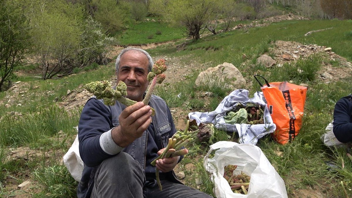 Bitlis'in Tatvan ilçesinde 2 bin 500 rakımlı Dönertaş köyündeki dağlarda mayıs ve haziran aylarında doğal olarak yetişen uçkun bitkisi, yöre halkının vazgeçilmezi haline gelmeye devam ediyor.