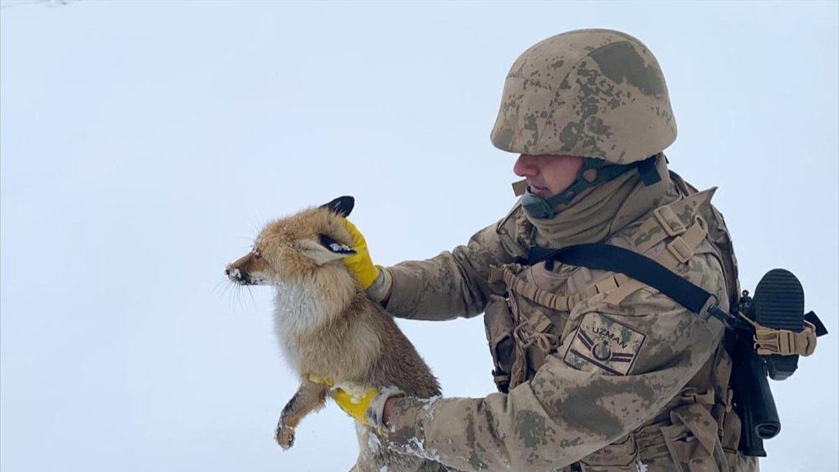 Bitlis merkeze bağlı Yolalan Jandarma Karakol Komutanlığı'nda görevli jandarmalar, devriye sırasında karın içinde yaralı bir tilki buldu.
