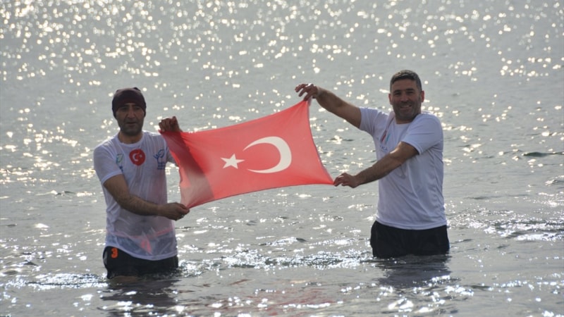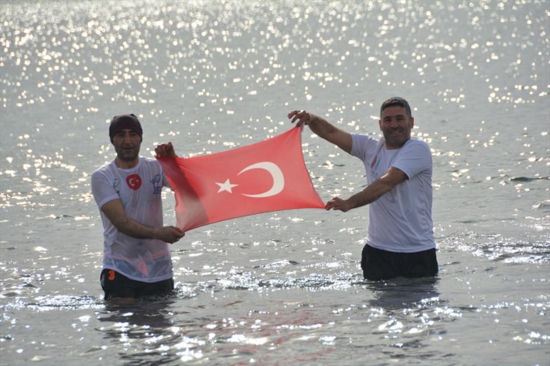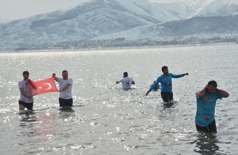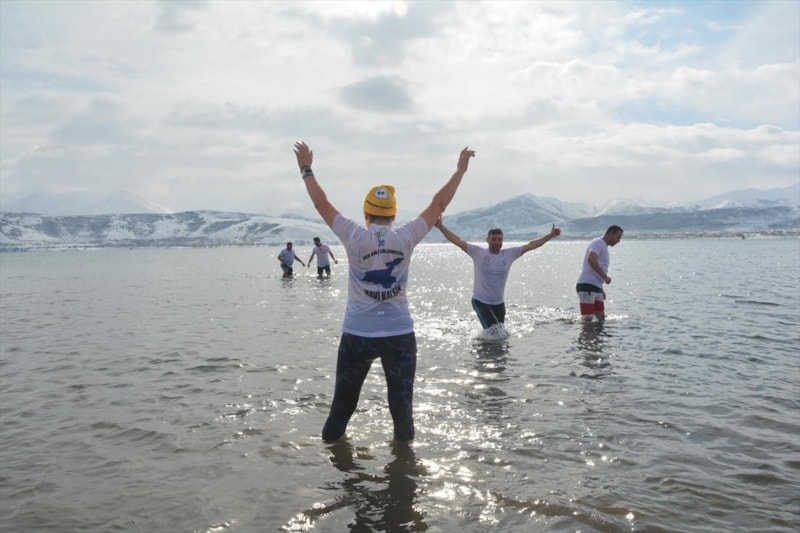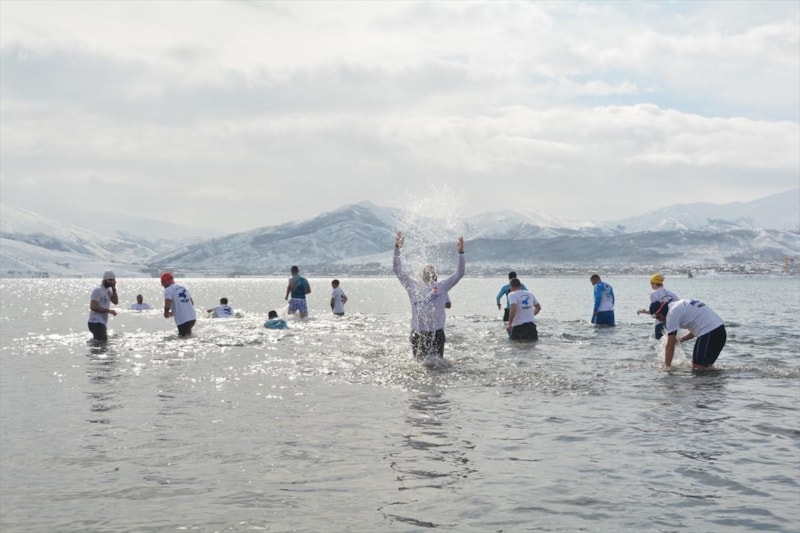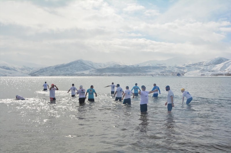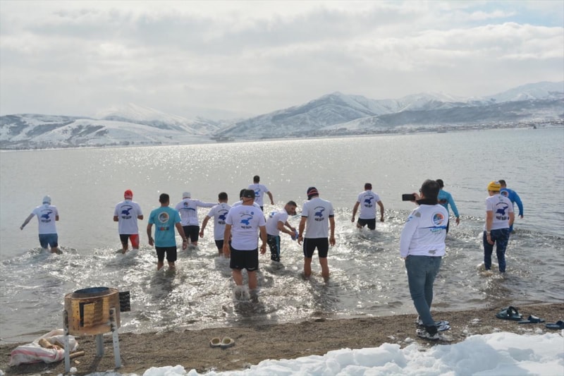 Van Gölü havzasının turizm potansiyeline dikkat çekerek farkındalık oluşturmak için ilgi çekici bir etkinlik düzenlendi. Etkinliğe katılan 50 kişi, soğuğa aldırmadan kendilerini Van Gölü'nün sularına attı ve Türk bayrağı ile suda selam verdi.