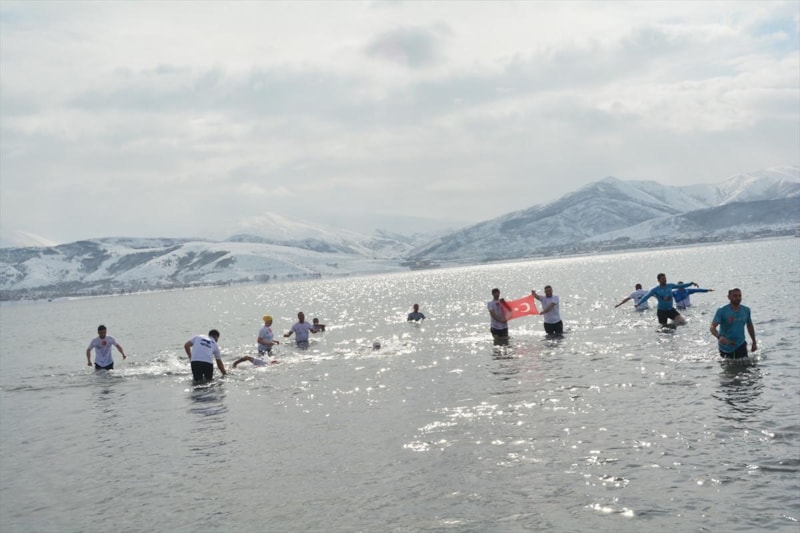 Bitlis'in Tatvan ilçesinde "6. Van Gölü Kış Yüzme Şenliği" düzenlendi.