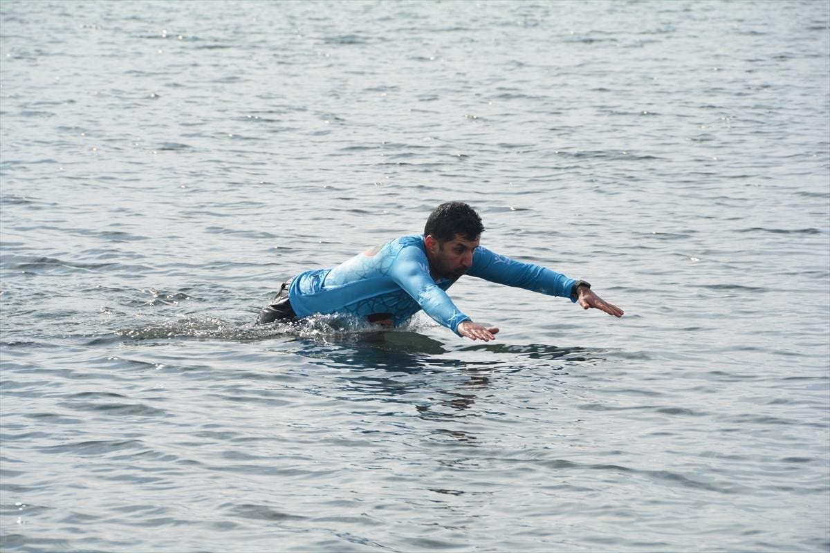 Karın yağması bizi mutlu ediyor, çünkü ciddi bir kuraklık var. Amacımız bu kuraklığa da dikkati çekmektir. Dün 50 kişilik ekiple kısmen buz tutmuş Muradiye Şelalesi'nde yüzdük. Akşam Tatvan'da kamp kurduk ve bugün de Van Gölü'ne girdik. Bu etkinliğe ülkemizin farklı illerinden 50 kişi katıldı. Van Gölü konusunda farkındalık oluşturuyoruz.