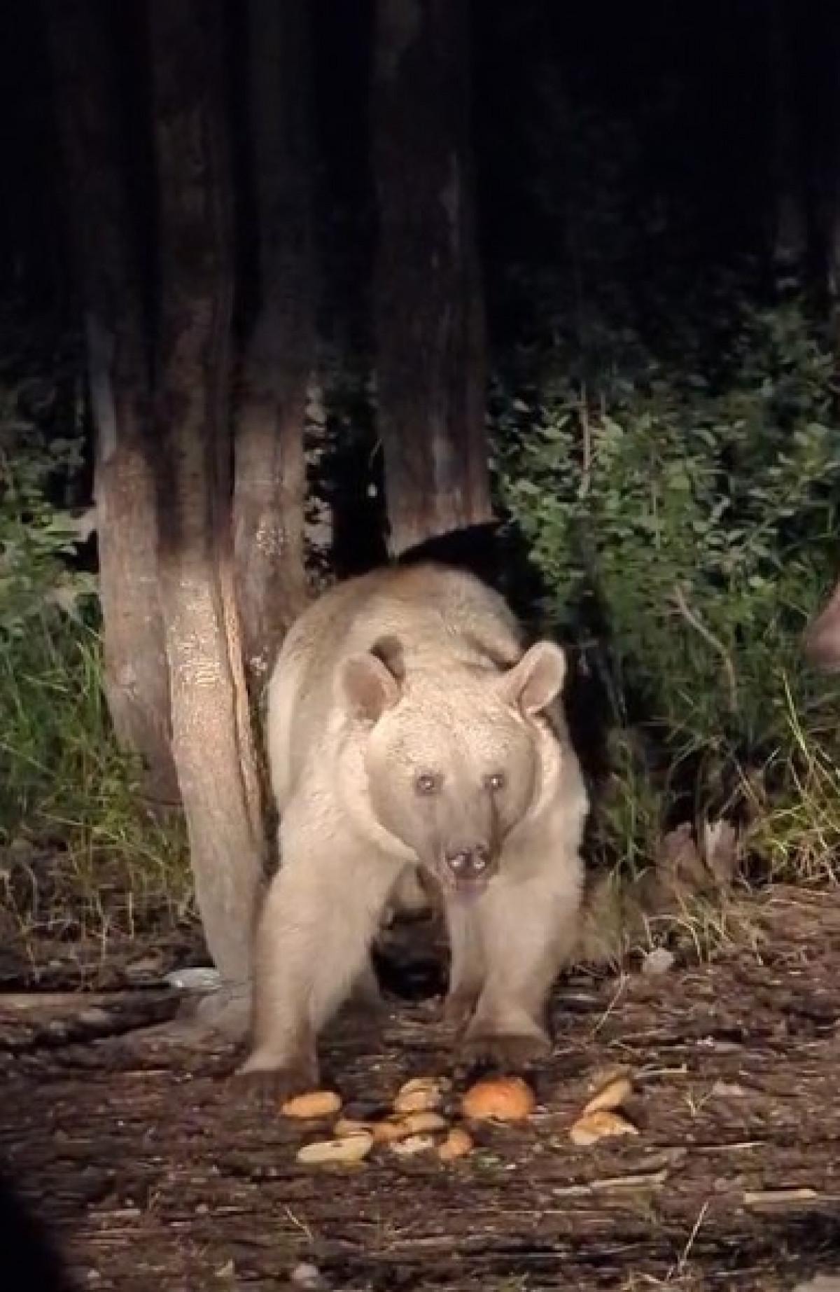Boz ayıların beslenmesine yardımcı olan vatandaşlar kimi zaman ilginç görüntüler oluşturuyor.