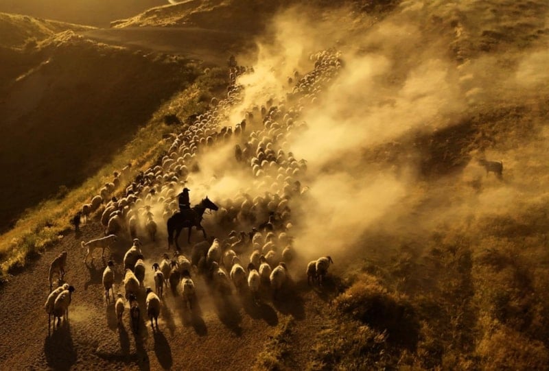 Çobanların ve koyun sürülerinin günde 15 kilometrelik tozlu yolculuğu fotoğrafçılardan yoğun ilgi görüyor.