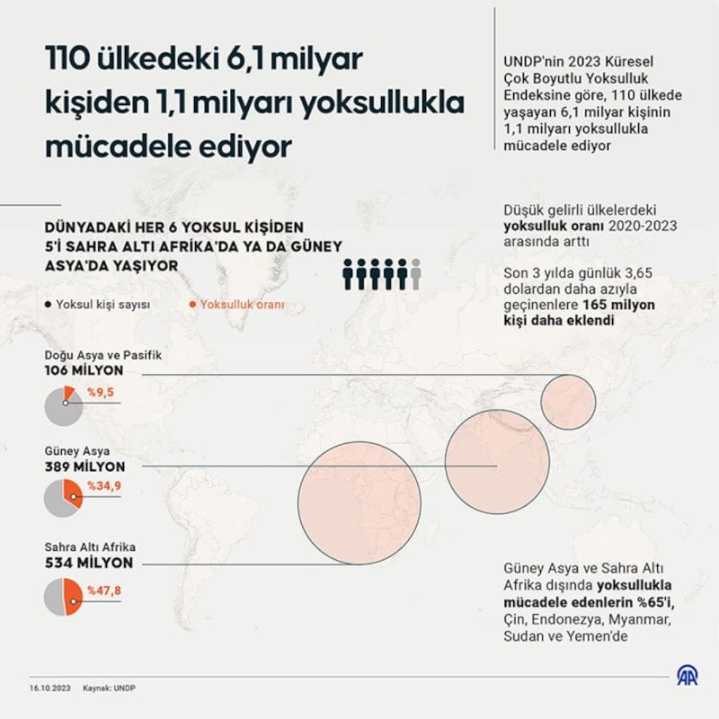 Birleşmiş Milletler (BM) Kalkınma Programı'nın (UNDP), 2023 Küresel Çok Boyutlu Yoksulluk Endeksi'ne göre, 110 ülkede yaşayan 6,1 milyar kişiden 1,1 milyarı yoksullukla mücadele ediyor.