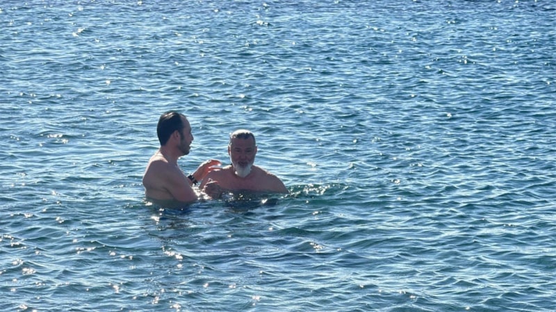 Soğuk havaya rağmen denize giren vatandaşlar, yeni yılın ilk gününde denizin keyfini çıkardı.
