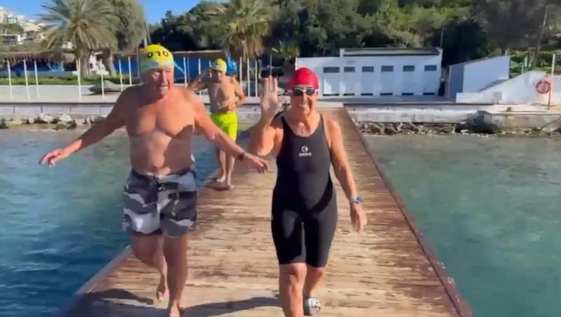 Muğla'nın Bodrum ve Milas ilçelerinde, yeni yılın ilk gününde vatandaşlar soğuk havaya aldırış etmeden denize girdi.