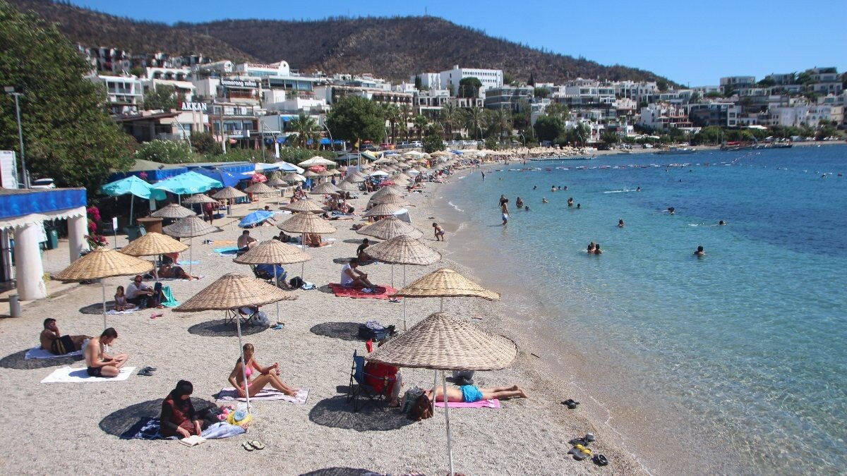 Okulların uzun bir zamanın ardından açılmasıyla yerli turist yoğunluğunun azaldığı Muğla'nın Bodrum ilçesinde hafta sonunda sahiller temmuz ve ağustos aylarından farklı olmadı.