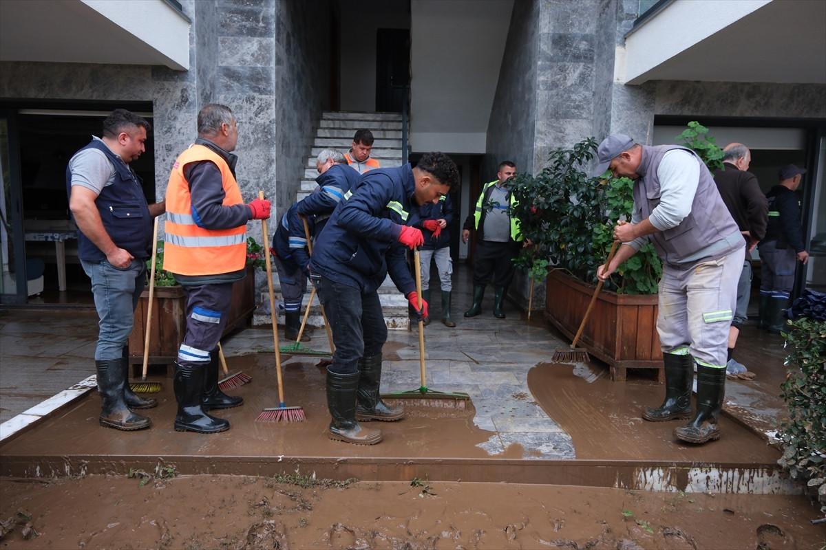 Belediye temizlik işleri ekiplerinin selden etkilenenlere yardımcı olduğu belirtilen açıklamada, "Ekiplerimiz zarar gören malzemelerin tanzimi için de ailelere yardımcı oluyorlar. Zarar tespiti yapılıyor. Şu anda bölgemizde yağış durdu." ifadeleri kullanıldı.