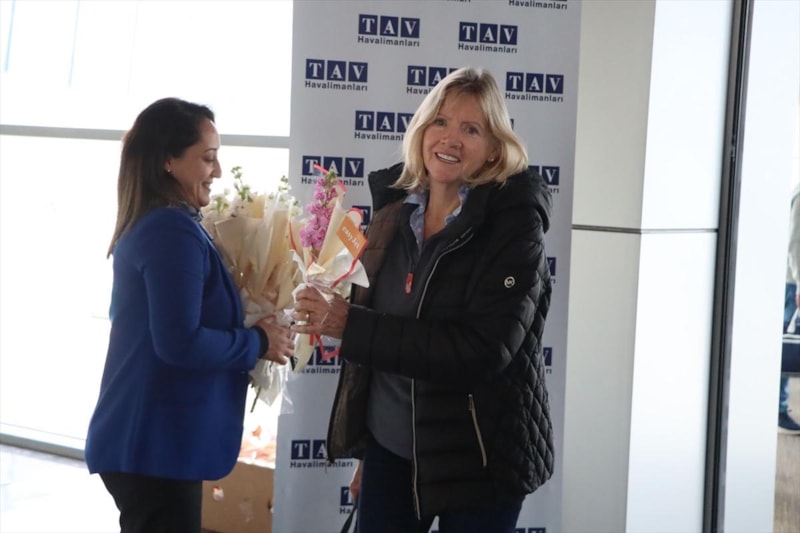 Bodrum'a İngiltere’den gelen sezonun ilk turist kafilesi Milas-Bodrum Havalimanı'nda çiçeklerle karşılandı.