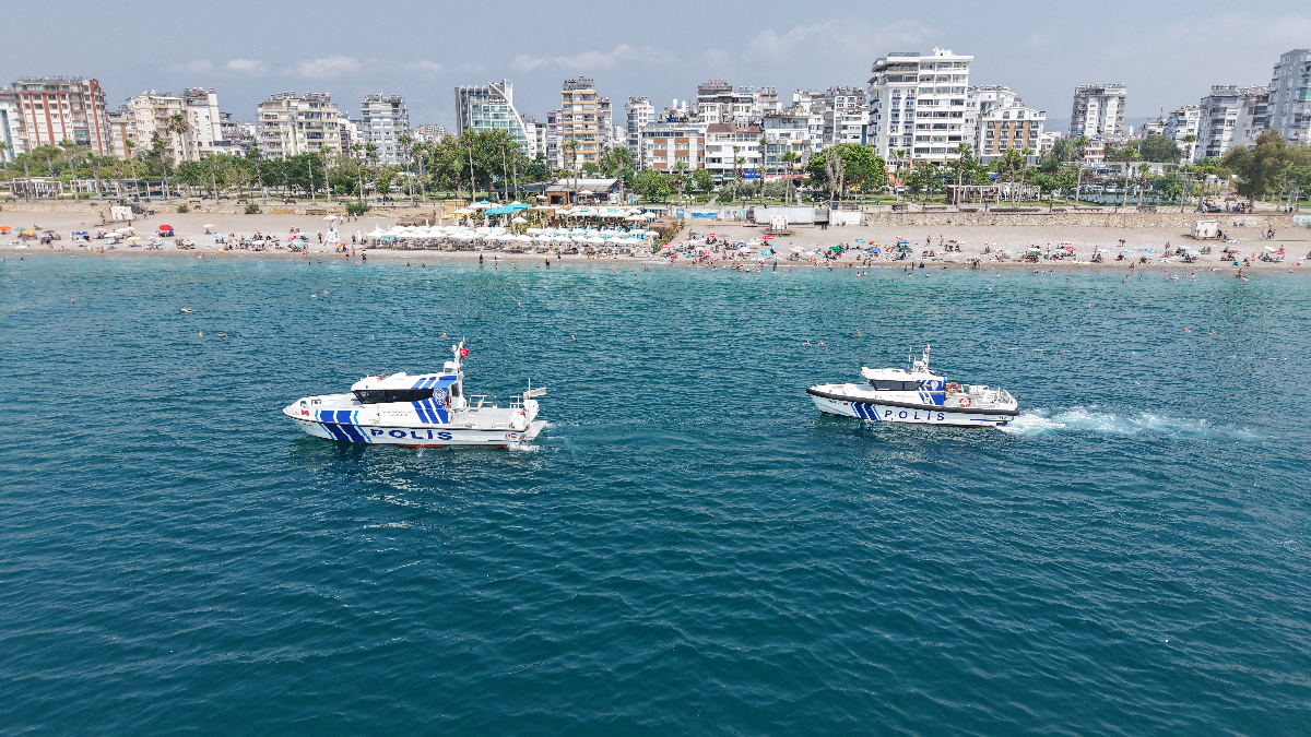 Antalya'da deniz polisi ekipleri, turizm sezonunun yoğunluğu nedeniyle deniz güvenliği için 24 saat esasına göre görev yapıyor.