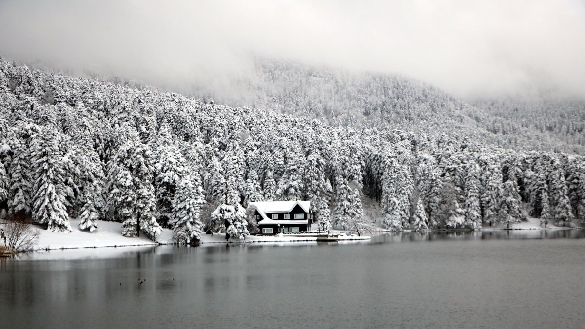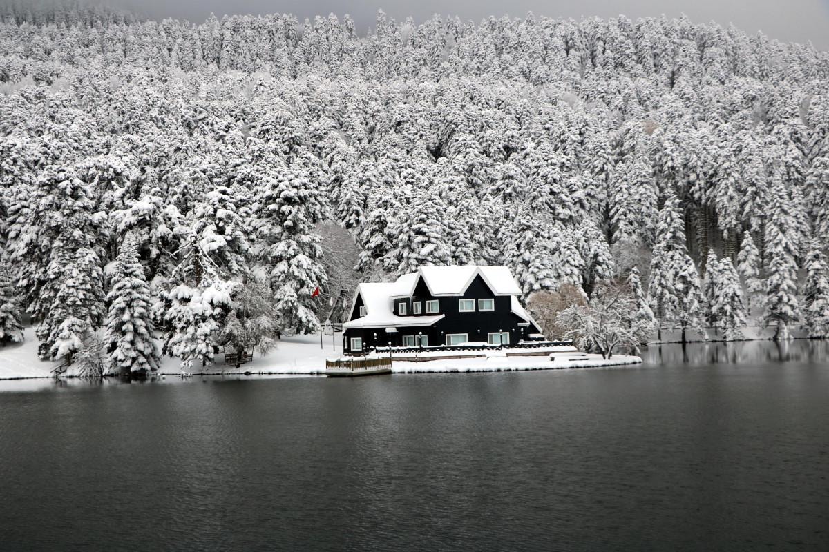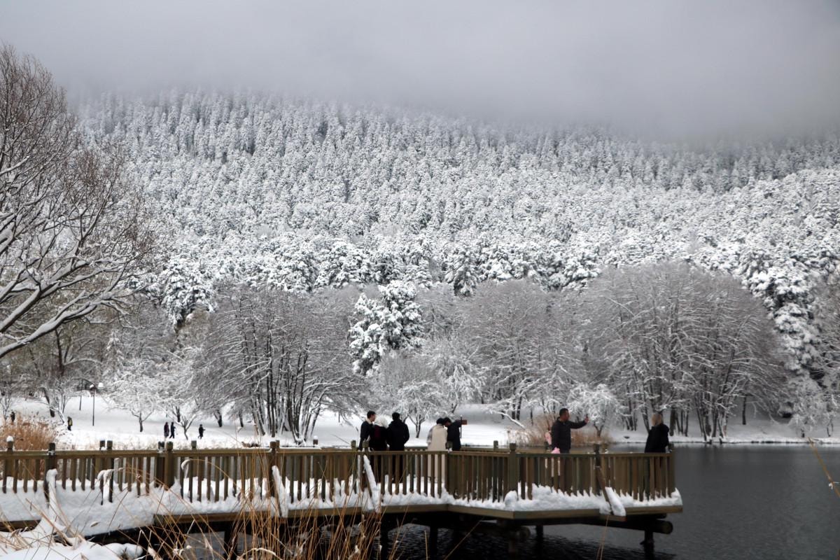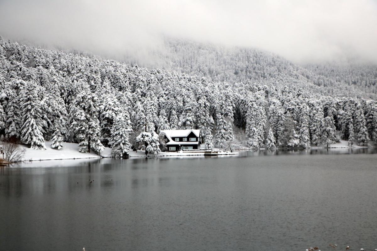 Yılın her mevsimi tatilcilerin ilgi odağı olan Gölcük’ün karla kaplı çam ormanlarının göl ile bütünleşmesi eşsiz manzaralar oluşturdu.