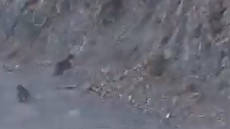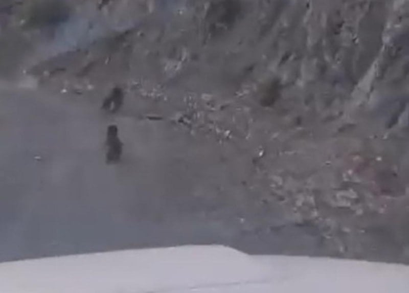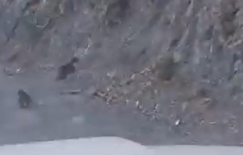 Cep telefonuyla kayda alınan görüntülerde, yavru ayının annesini takip ederek zorlu arazide hızla yukarı çıkması dikkat çekti. O anlar sosyal medyada da büyük ilgi gördü.