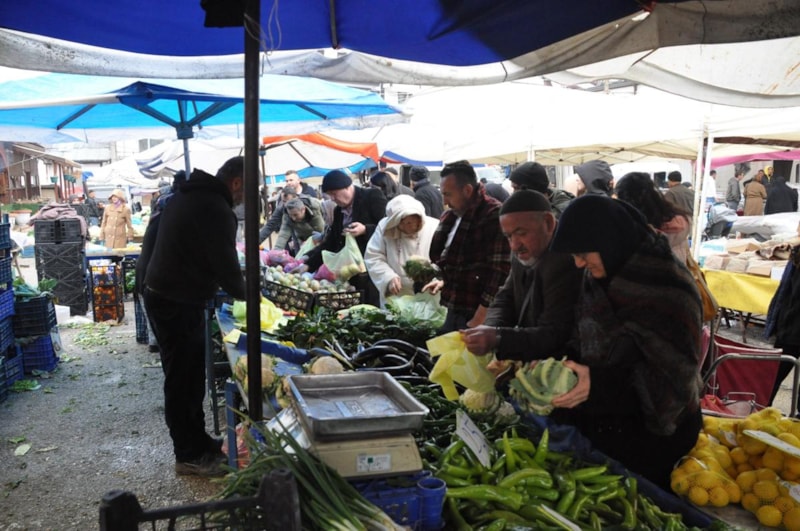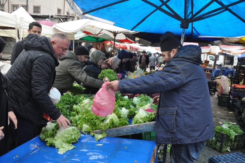 Vatandaşlar ise Coşkun Ak'ın tezgahında yoğunluk oluşturdu. Ak; soğan, pırasa, marul, roka, turp, patlıcan, biber, lahana gibi ürünleri 5 liradan sattı.