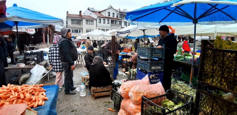 Ankara'nın Nallıhan ilçesinde yetiştirdiği ürünleri, 20 yıldır Mudurnu'da kurulan pazarda satan 56 yaşındaki Coşkun Ak, emeklilik sevinci yaşadı.