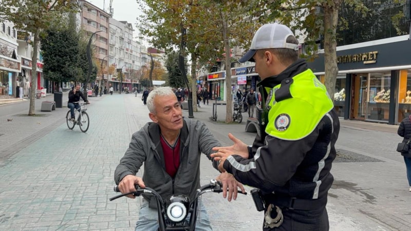 Motosikletlerin girmesinin yasak olduğu İzzet Baysal Caddesi’ne giren motosiklet sürücülere 690 lira para cezası kesildi.