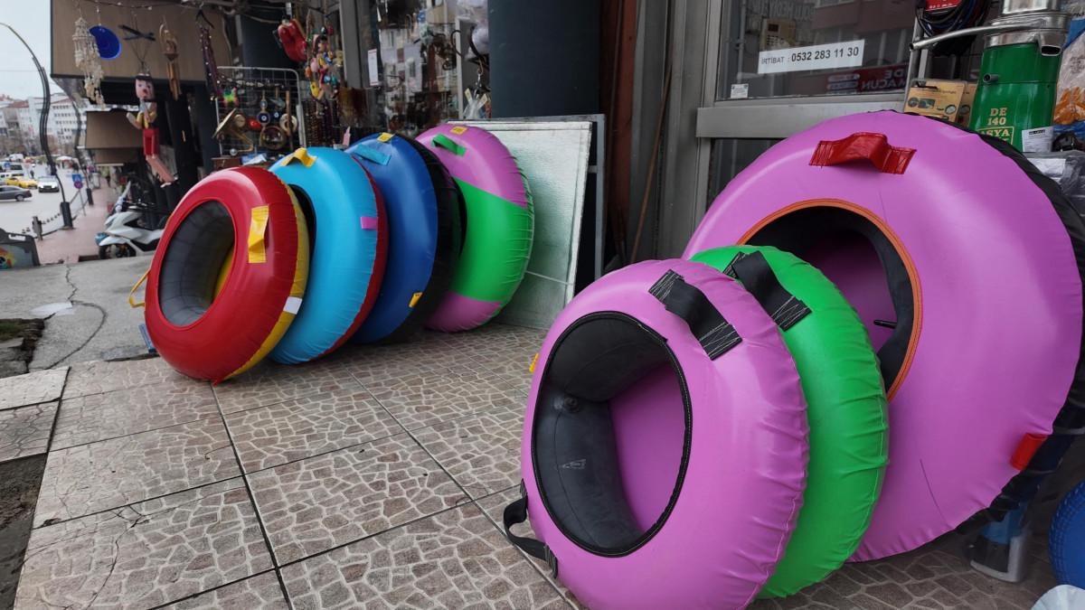 Bolu'da kar yağışı ile birlikte çocukların kaymak için kullandıkları şambrele talep arttı. Şambrel üreten esnaf Fatih Düğen, "Talebe yetişemez olduk" dedi.