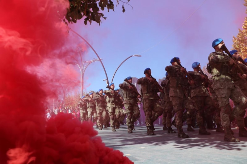 Bolu'da Türkiye Cumhuriyeti’nin 101’inci yıl dönümü ve 29 Ekim Cumhuriyet Bayramı kutlamalarında 2’nci Komando Tugay Komutanlığı’nda görevli komandolar marşlarla yürüdü.