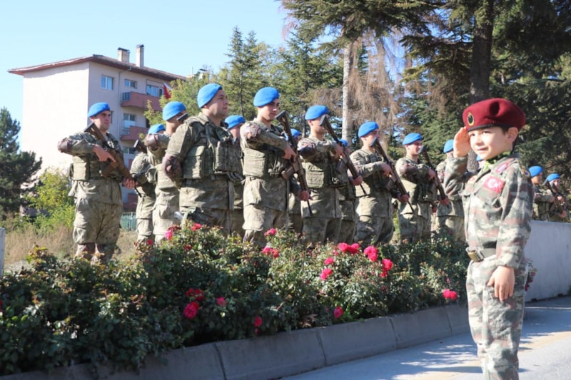 Törene katılan 5 yaşındaki Ali Asaf Aşık, asker kıyafeti içerisinde babasının da bulunduğu komandoları selamladı.