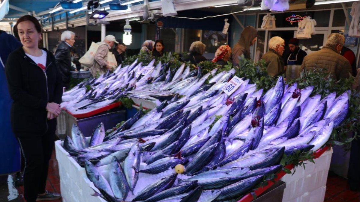Bolu'da da halk pazarında kurulan balık tezgahlarında palamut ve hamsi bolluğu yaşandı.