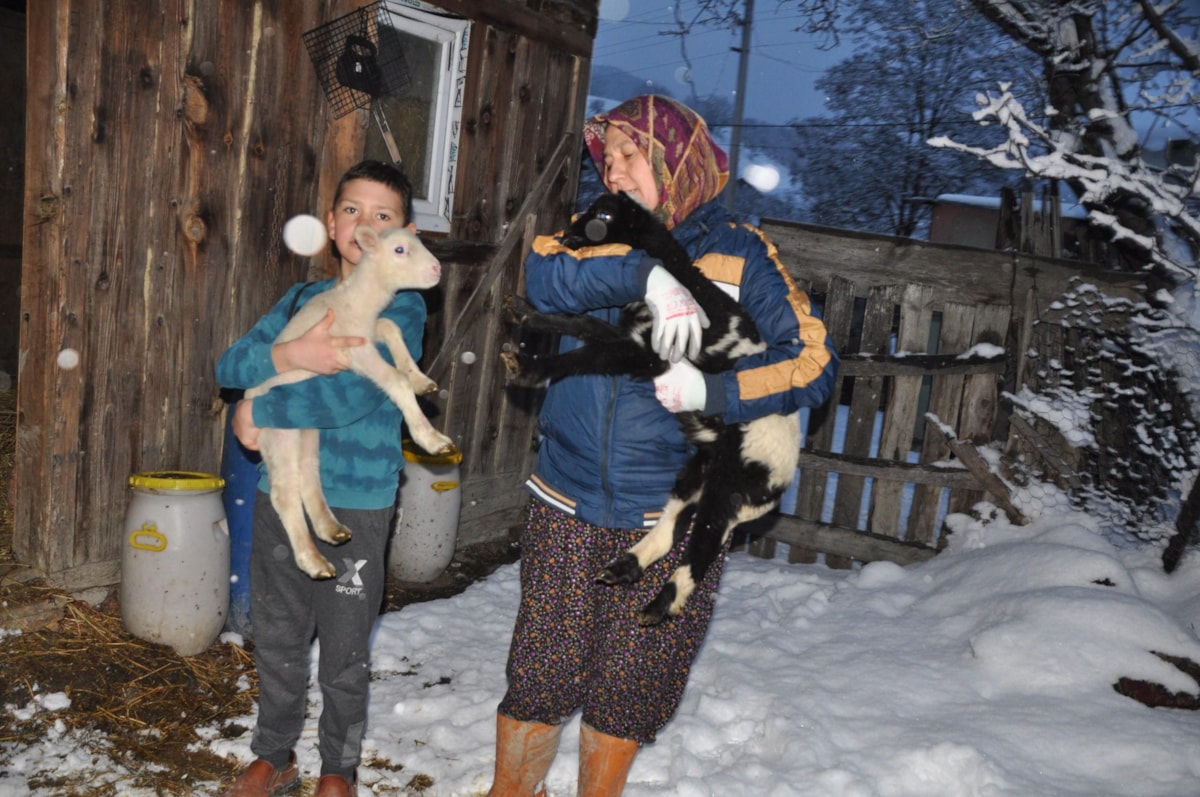 Öztürk ailesi, kış ayında ikiz doğuran koyunları ‘Bahar’ın ‘Ceylan’ ve ‘Osman’ ismini verdikleri kuzularını evine aldı.