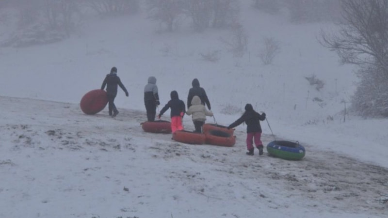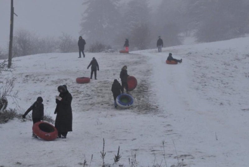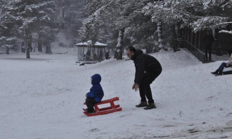 Okullarda yarıyıl tatiline girmesiyle birlikte kar tatili yapmak isteyen aileler tatil beldelerine akın etti. Ziyaretçiler, beyaza bürünmüş bölgede fotoğraf çekilirken dik yamaçlardan lastiklerle kayarak eğlenceli anlar yaşadı.