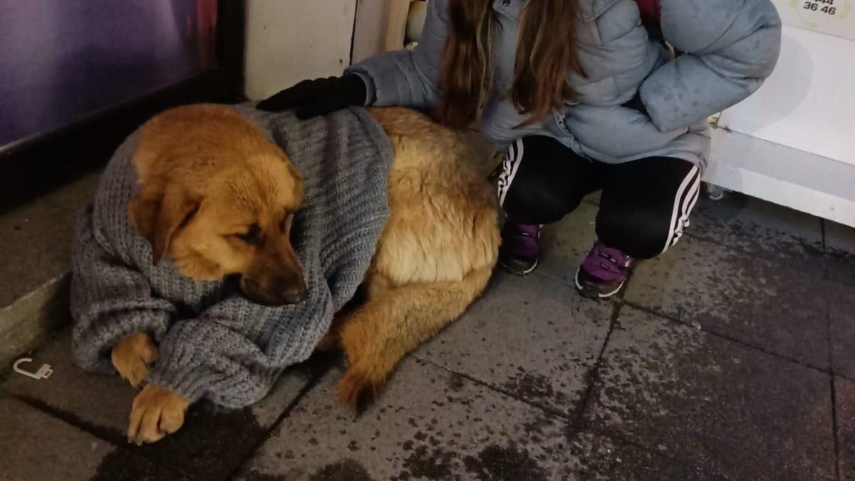 Bolu’da Elif Sarıhan isimli vatandaş kızıyla birlikte kışlık kıyafet alışverişi yapmak için İzzet Baysal Caddesi’nde bulunan bir mağazaya girdiği sırada soğuktan üşüyen bir köpek gördü.