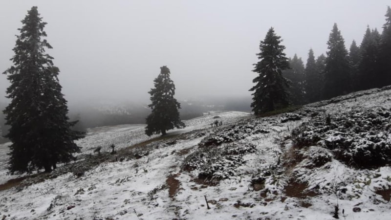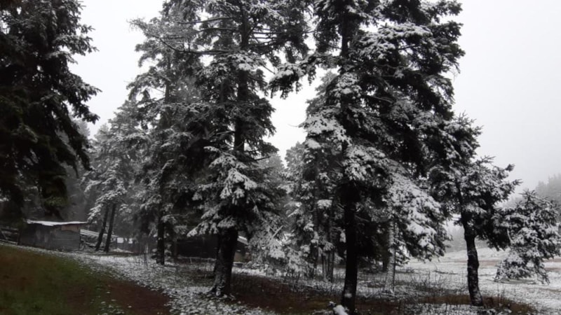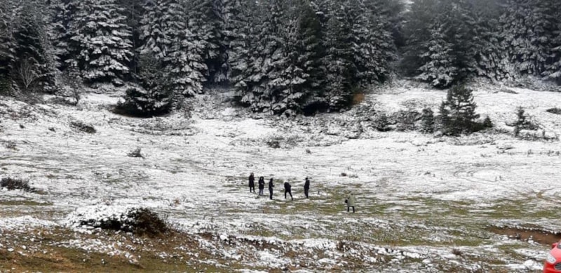 Abant Gölü Milli Parkı çevresinde gecenin ilerleyen saatlerinde etkili olan kar yağışı, yeşil alanları beyaz bir örtüyle kapladı.