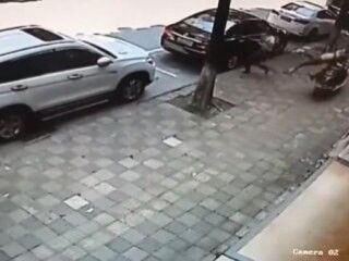 Guangdong eyaletine bağlı Fogang ilçesinde boşanma duruşmasına giden adam, karısına arkadan motosikletle çarptı. Çarpmanın etkisiyle genç kadın, havaya uçtu ve ağaca çarptı.