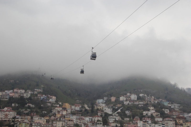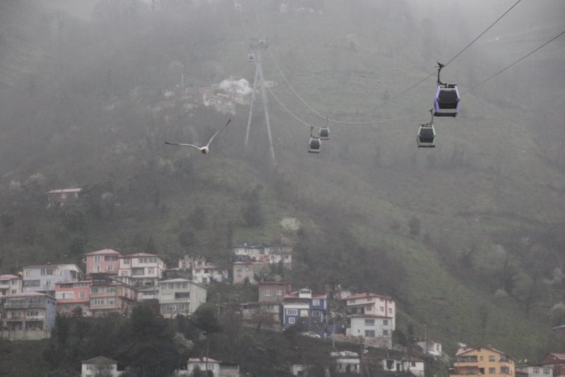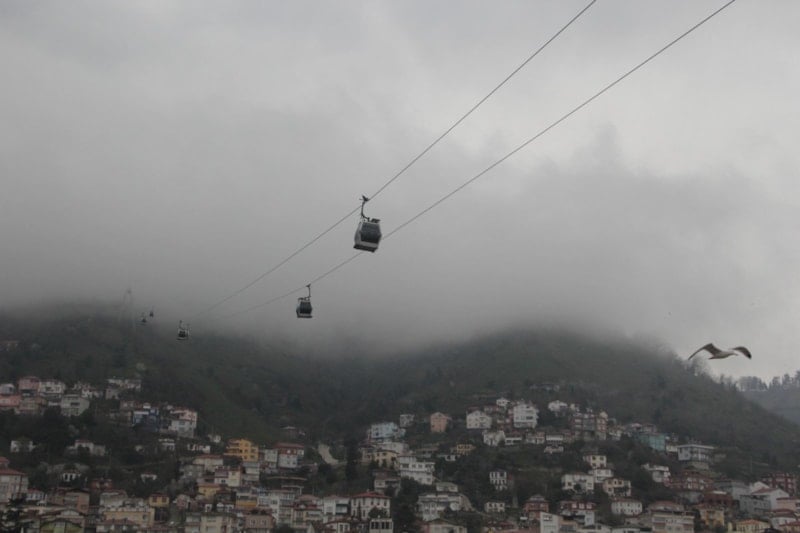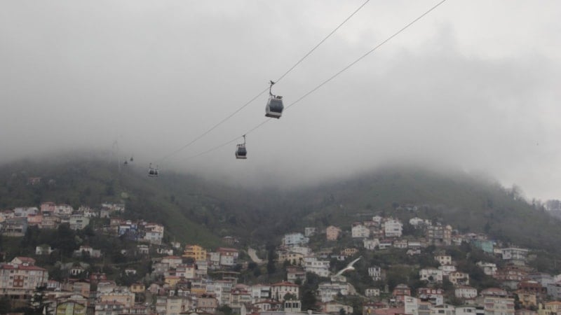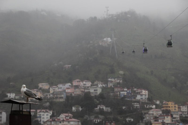 Boztepe’ye çıkan teleferik kabinleri ve bölgedeki kuşlar, sisle bütünleşerek fotoğraf meraklıları için eşsiz kareler oluşturdu. Hava sıcaklığının ortalama 12 derece ölçüldüğü bölgede, aralıklarla görülen yağmur da manzaraya ayrı bir atmosfer kattı.