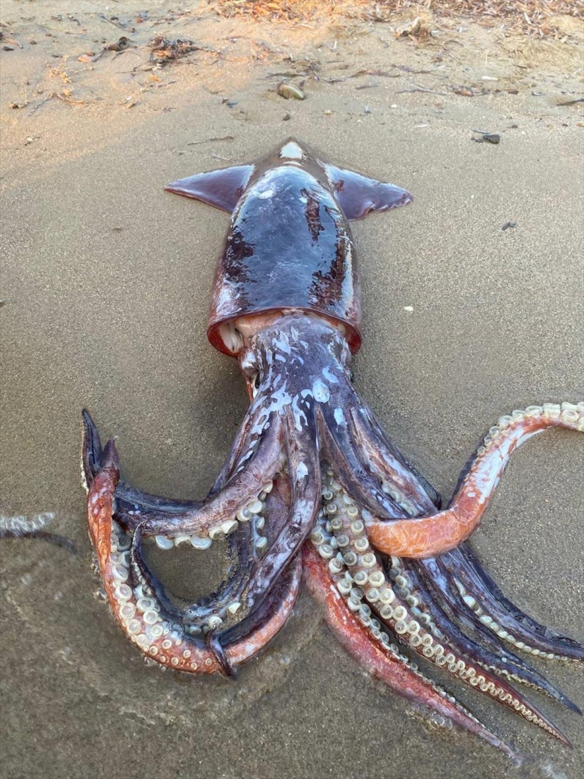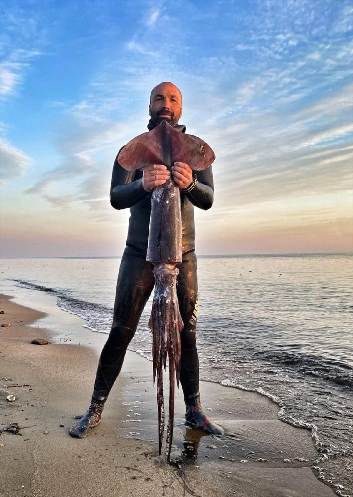 Şendil, Ayvalık ve Edremit Körfezi bölgesinde ilk kez bu büyüklükte bir kalamarla karşılaştığını belirtti.