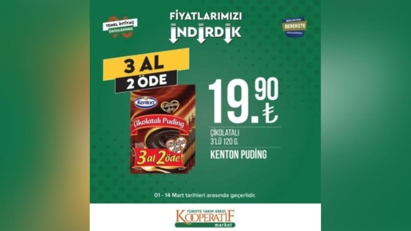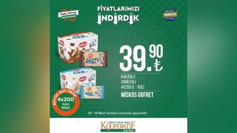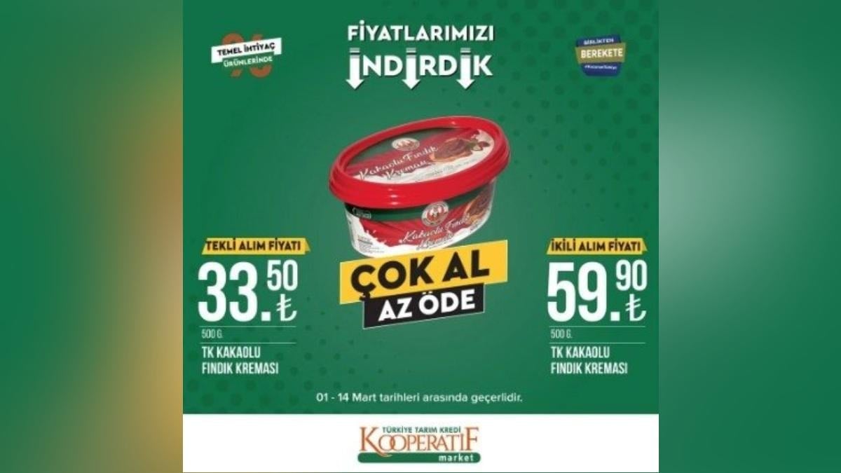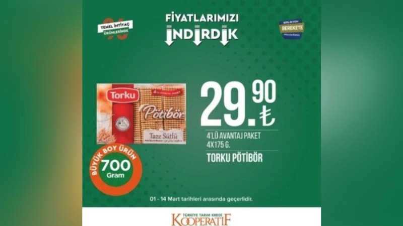 Kar amaçlı kurulmayan Tarım Kredi Kooperatif market mart ayı kataloğunu yayınlandı. Fırsat indirimleri vatandaşların dikkatini çekti.