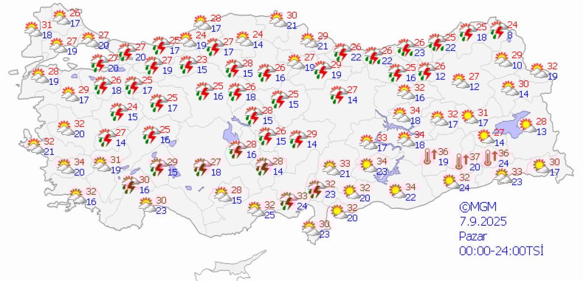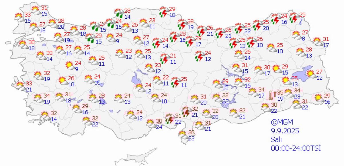 Bugün bazı illerde hava sıcaklıkları ise şöyle:
