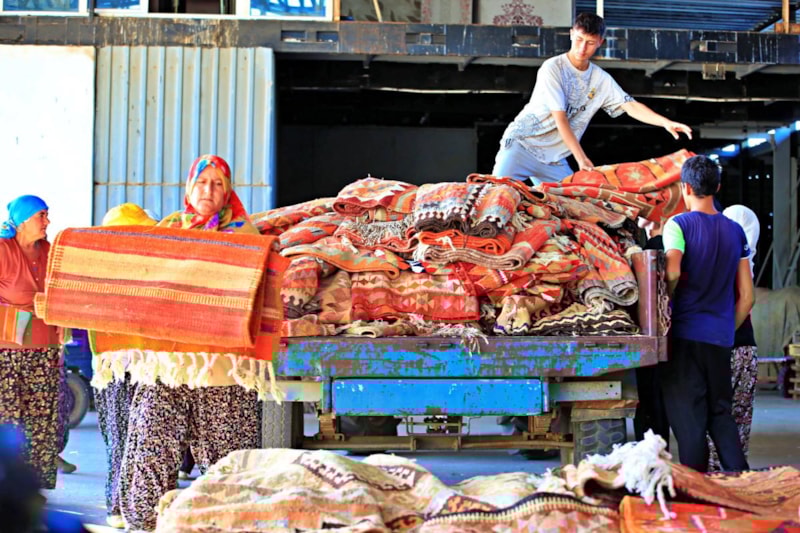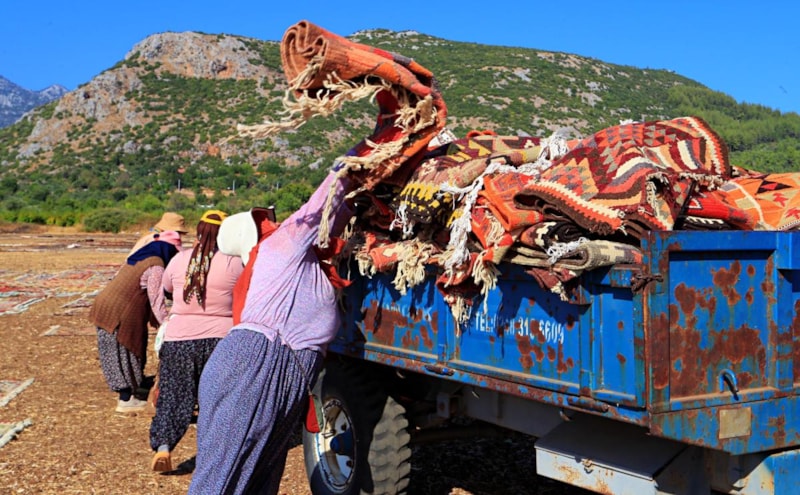 Döşemealtı'nda kışın buğday ekilen tarlalarda, bu kez mahsul değil değeri milyonları bulan el dokuması halı ve kilimler hasat edildi.