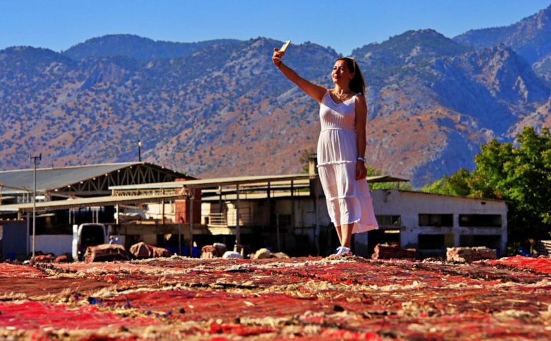 Renk şöleninin yaşandığı halı tarlalarını sosyal medyada gördüğünü söyleyen ve fotoğraf çekinen Eda Günay, "Sosyal medya üzerinden gördüm ve gelip yerinde gelip görmek istedim. Bir süredir gelmek istiyordum ve bugüne nasip oldu. Halıların toplanma zamanına denk geldi. Renkli olanlar çok güzel gözüküyor. Fotoğraf açısından da çok güzeller. Fotoğraf ve videolar çektim, sayfamda da paylaşacağım. Herkese görmelerini tavsiye ederim." şeklinde konuştu.