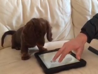 Sevimli küçük köpek, sahibinin iPad'ten açtığı oyunla oynarken görüntülendi. Oyun sırasında patilerini kullanan ve zıplayan köpek, sosyal medyada ilgi uyandırdı.