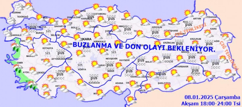 Ülkemizin iç ve doğu kesimlerinde buzlanma ve don ile birlikte pus ve yer yer sis hadisesi bekleniyor.