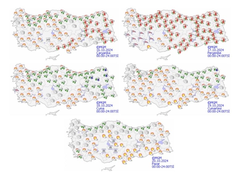 Meteoroloji Genel Müdürlüğü, resmi hesabından son hava durumu raporunu yayınladı.