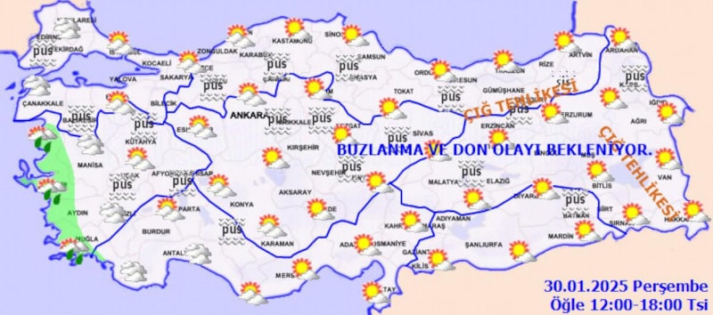 Doğu Karadeniz’in iç kesimlerinin yüksekleri ile Doğu Anadolu’nun yüksek ve dik yamaçlarında çığ tehlikesi bulunmaktadır" notu düşüldü.
