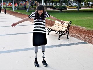 Kaval kemikleri ve parmakları eksik olarak dünyaya gelen, ayaklarını yerde sürükleyerek güçlükle adım atabilen ve bu nedenle ağrıları olan 35 yaşındaki Buket Durmuş, yaklaşık 7 ay önce Adana'da özel bir hastanede yapılan ameliyatla protez bacaklarına kavuştu.