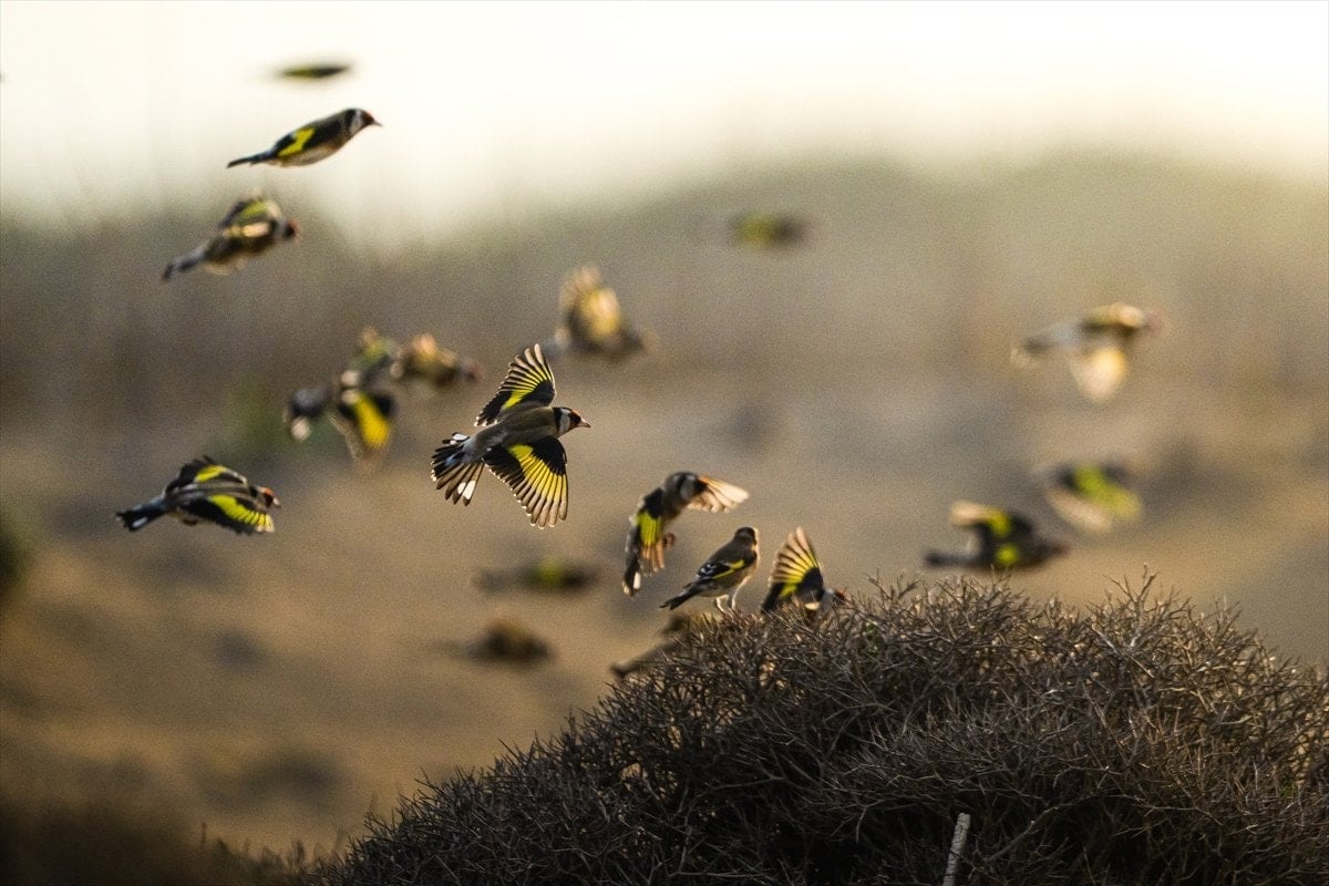 Bursa’nın kırsal bölgelerinde doğaseverlerin dikkatini çeken saka kuşları, sürüler halinde uçarken görsel bir şölen sundu. Uçuş sırasında kanatlarındaki belirgin sarı renklerle öne çıkan kuşlar, kırlarda hareketli görüntüler oluşturdu.