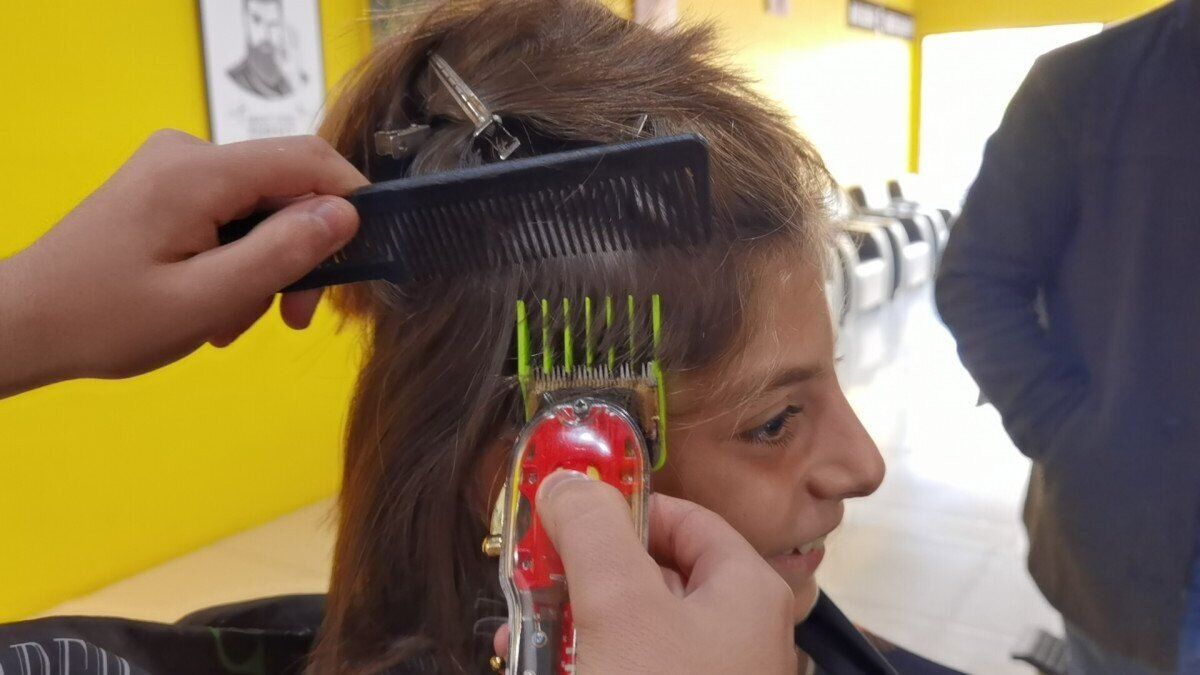 İlk kez 12 yaşında berber koltuğuna oturan Baran Barış'ın saçlarının kesilmesi 1 saati buldu.
