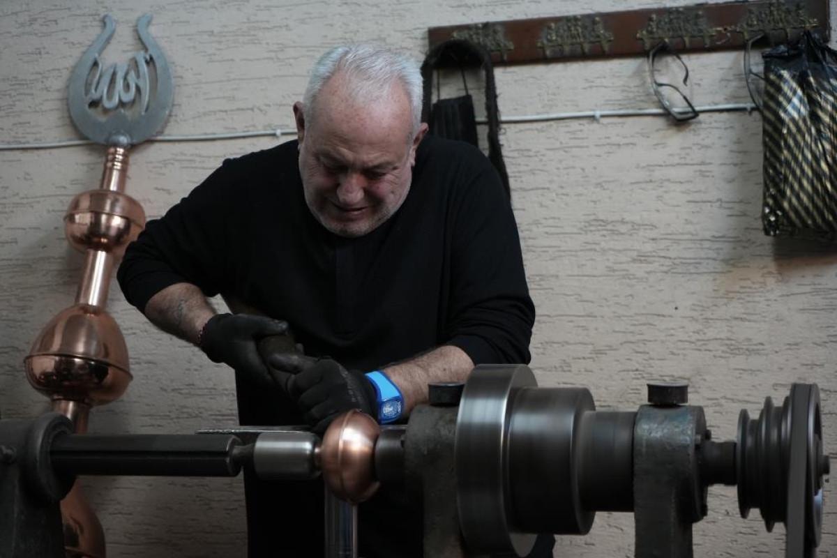 Abdal Mahallesi’nde bulunan atölyesinde babasından kalan aletlerle 14 yaşından bu yana zanaatına devam eden Akbalış, Türkiye’de birçok tarihi caminin alemini onarırken yurt dışına da sipariş üzerine ihracat yapıyor.