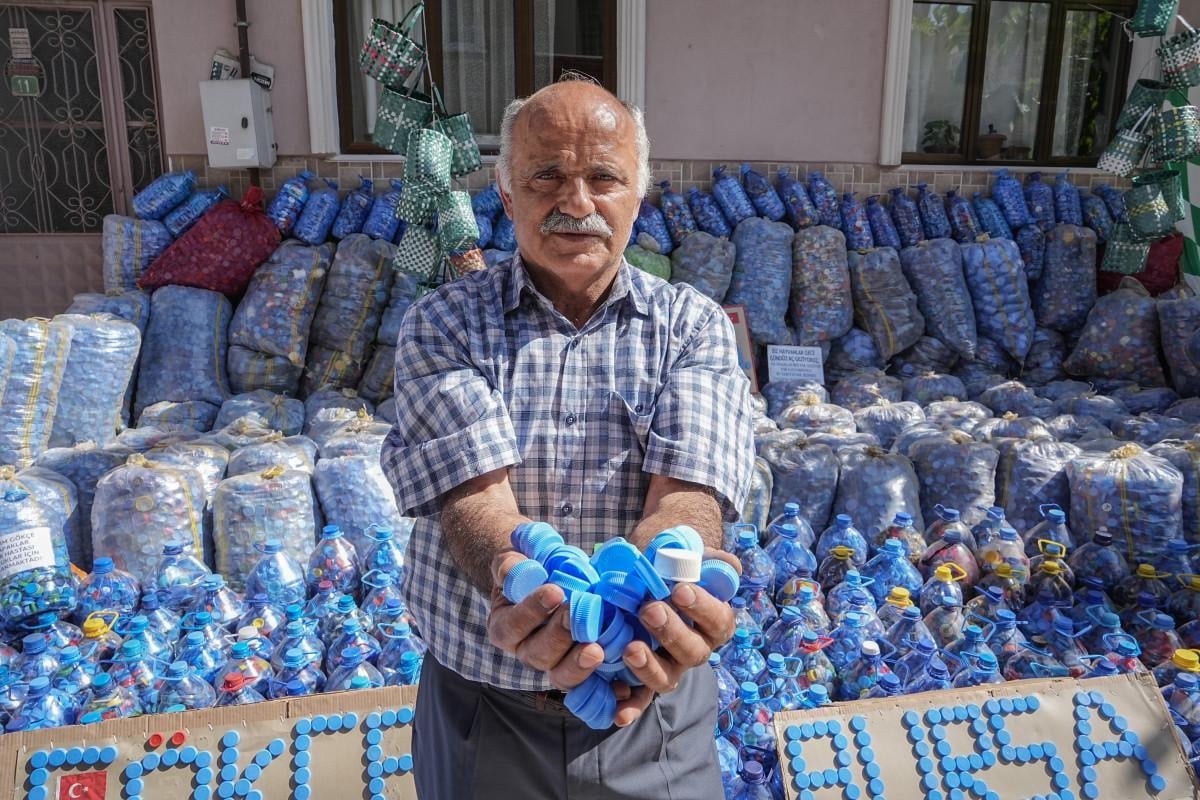2 milyon civarı kapak topladım. Bu kapakları 3 senede topladım. Gönüllüler ve mahalle muhtarımızın destekleriyle bu kapakları toplayabiliyoruz. İsmini bilmediğim onlarca kişi bu kapakları toplamama yardım etti. Bazı sokaklara kapak toplama kutuları koyuyorum. Sağ olsunlar herkes bu konuda duyarlı.