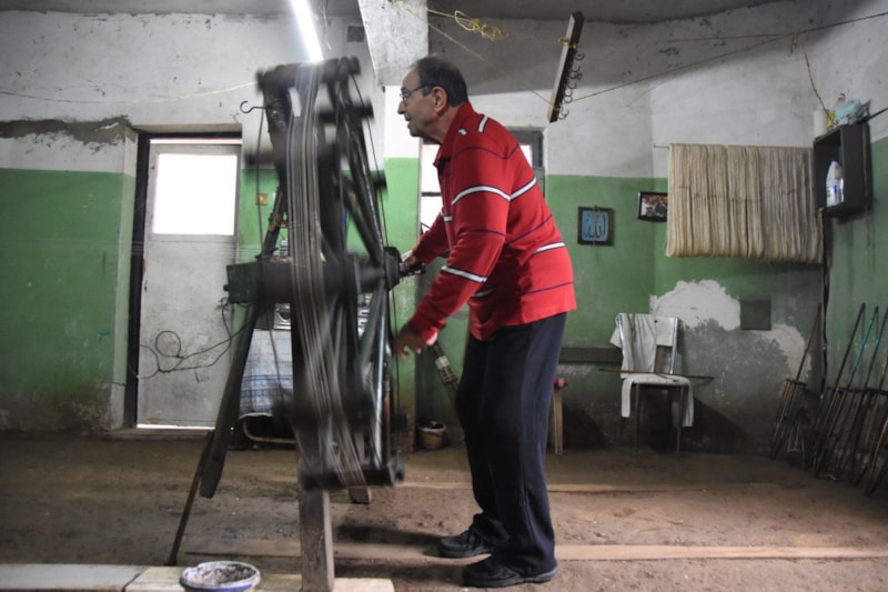 Geleneksel yöntemlerle iplik büken Şengünalp'in çalışma temposu, dikkat çekiyor.