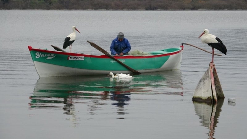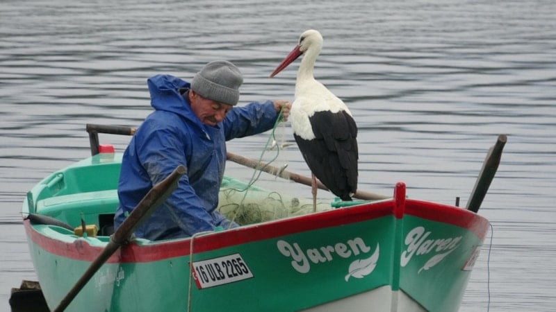 24 Şubat'ta sabah saatlerinde köye gelip yuvaya konan Yaren leylek, daha sonra balıkçı Adem Yılmaz'ın evinin çatısında görüntülendi. Yaren leylek, her yıl olduğu gibi göle açılan Yılmaz'ın kayığına konarak tuttuğu balıklarla beslendi.