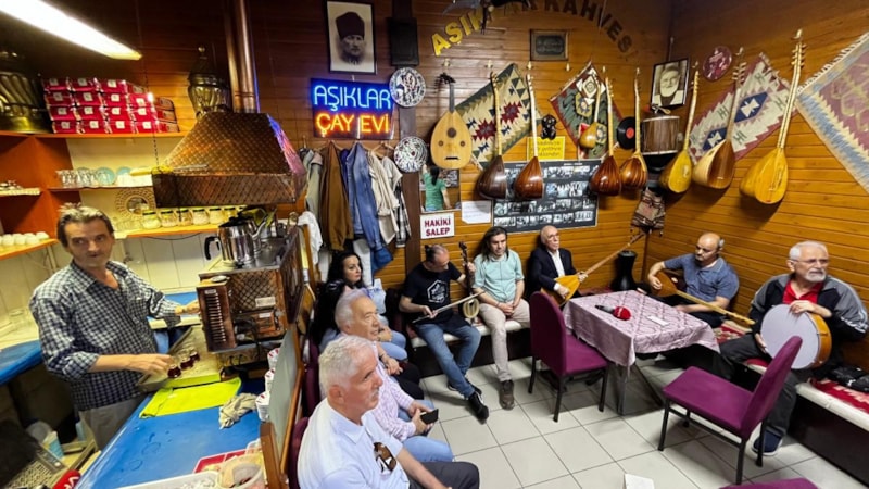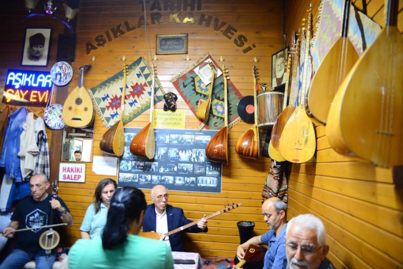 Saz çalmayı sevip Türk halk müziğinden hoşlananların buluşma noktası olan kahvede, sazlarıyla meşk eden aşıklar, türküseverlerin ruhuna dokunup, Anadolu ezgilerini de geleceğe taşıyor.
